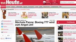 Heute. at erklärt die Boeing 777 offiziell zum Angst-Jet, weil drei Tage nach dem Unfall in San Francisco eine andere »Triple-Seven« ihren Flug bald nach dem Start abbrach.
