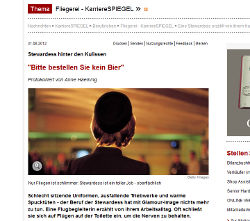SPIEGEL ONLINE bietet unter der Rubrik KarriereSpiegel einer Flugbegleiterin die Gelegenheit, aus ihrem Berufsalltag zu berichten – ungefiltert, unkommentiert, und offensichtlich ohne Plausibilitätscheck.