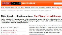 Nur Fliegen ist schlimmer, das ist das Fazit des SPIEGEL-Berichtes von Flugbegleiterin Sandra. Schlimmer als was? Aber egal.